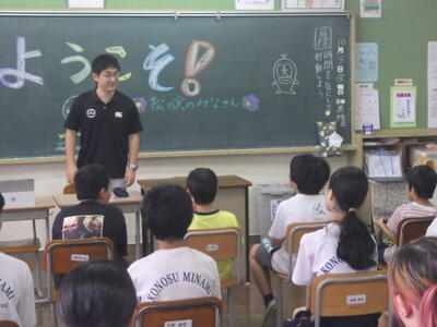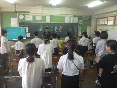 2時間目では、自己紹介タイムとクイズゲームを中心に活動し、3時間目では音楽室での音楽の授業をとおし、お互いの交流を深めました。