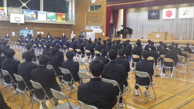 3年生の皆さんにとっては、学校への登校日数は本日と卒業証書授与式を含めて、いよいよ残り3日となりました。どうか残りの日々を大切に過ごすとともに、堂々とした立派な姿で本校を巣立ってください。