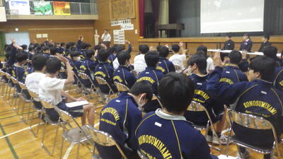 本日、貴重なお話をしてくれた本校卒業生の代表生徒に深く感謝します。これからも、卒業生として、ここ鴻巣南中学校を末永く応援してくださいね。本日は誠にありがとうございました。