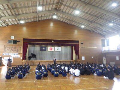 始めに、全員が体育館に集合し、新入教職員の紹介後、応援団から新しい先生達へエールが送られました。その力強さと、それを支える新2・3年生の立派な態度がとても印象的でした。