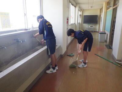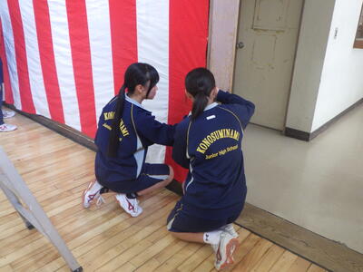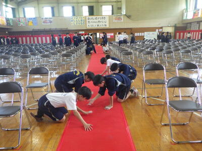 その後、新3年生は体育館で、1年生を気持ちよく迎えようと心を込めて入学式の会場準備を中心に作業を行いました。新2年生は新しい学年のスタートに向けて、やる気に満ちた良い表情で校舎内の机・イス等の移動や清掃を行いました。実に頼もしい働きぶりでした。