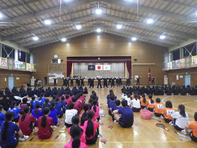 本日の午後、1年生の南中学校の教育活動についての理解を深めることを目的とした「対面式」を、体育館にて行いました。
